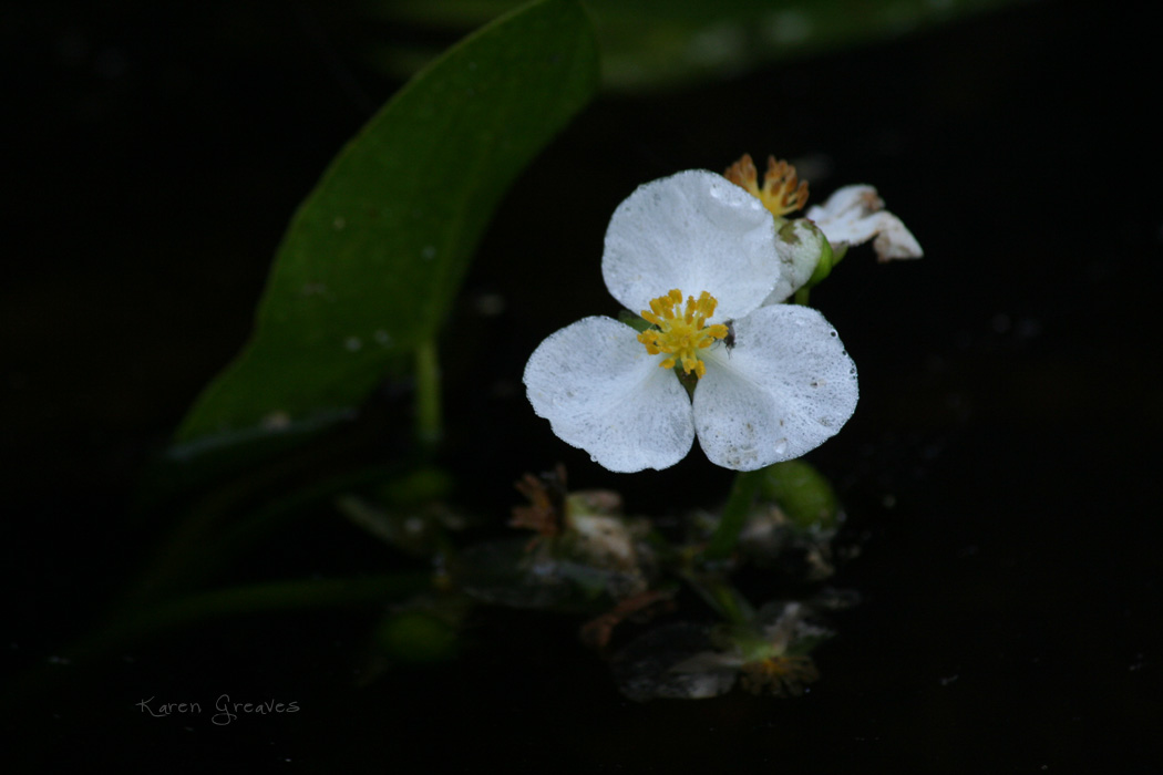 Stiff arrowheadI took this picture one quiet, early morning canoe paddle at Flindt Lake. This little blossom profoundly stood out in among the varying shades of green along the shoreline. I had no idea what type of plant it was until returning home and researching. (Thanks D & B!) In the future I will have to remember to take pictures of the leaves and stems…