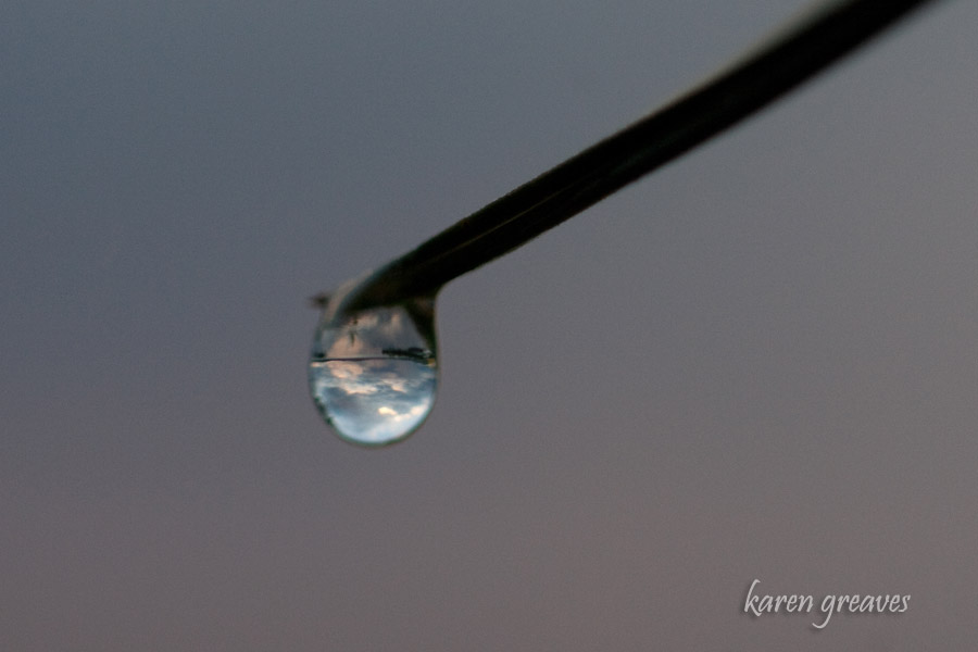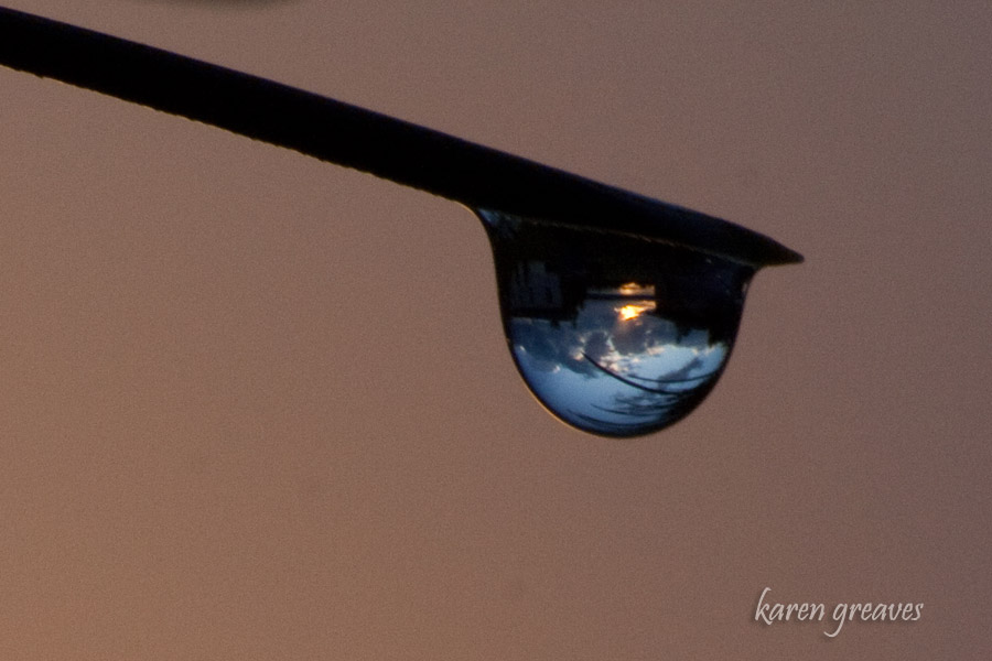 I love the views our lakeside home affords! The vista is constantly changing. It’s no wonder I love blue and white so much! The lake surface and sky above provide variations moment to moment. I couldn’t resist the opportunity to try my hand at reflective scenes after a rain this particular evening. First attempts were in a westerly direction where the sun was setting.