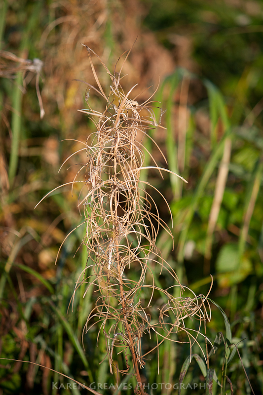 Like all vegatation in the fall, the colours of the plant fade and brown. Seeds have been set free to settle elsewhere and await spring.