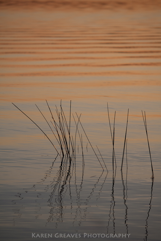 One more shot from the golden sunset evening: a study in lines. The wake of a passing boat threatens to disturb the smooth surface in the grasses. Fascinating textures are created.