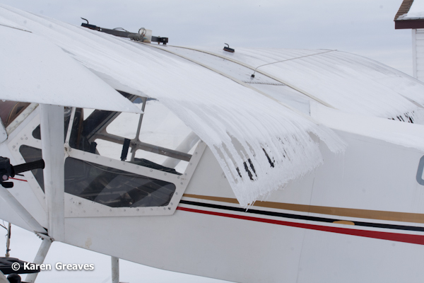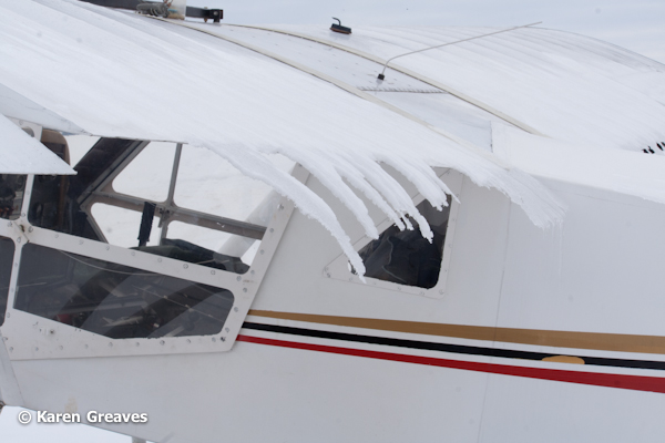 Flaps on an airplane wing alter air flow either assisting with or decreasing lift depending on how they are set. Â This aircraft parked in our yard had for a brief time some very decorative flaps as melting snow slipped off the airframe.