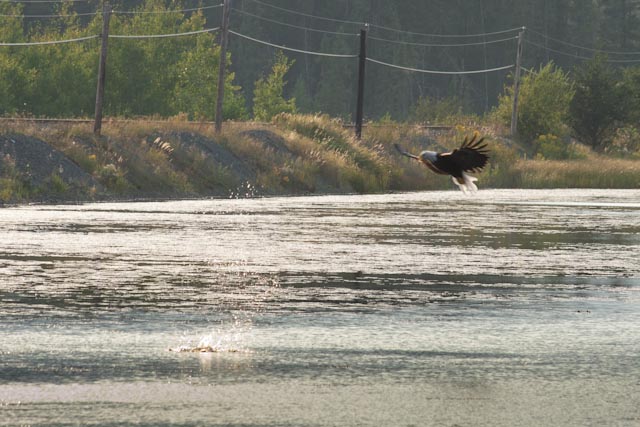 Heading out for a Sunday evening drive, we chanced upon some eagles with dinner plans. At least three where circling and swooping over a couple of ducklings just off Mameigwiess Road.