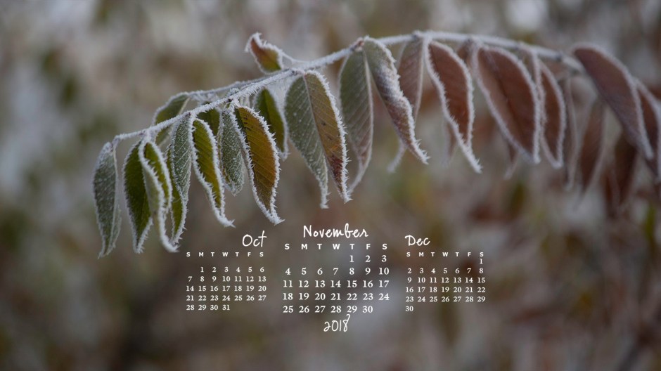 I couldn’t resist using some more coloured leaves for the desktop calendar. I love how the red and green remind us that Christmas isn’t very far off. Have you started holiday shopping?
