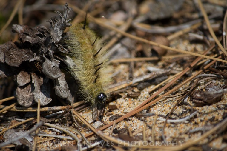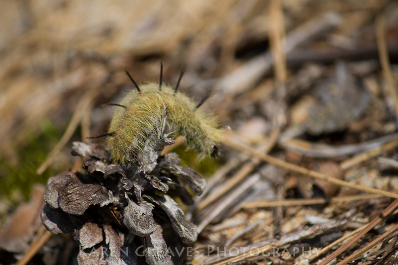 A recent afternoon, Brad and I headed to our Irene Lake outpost cabin to determine the work projects still remaining for the season (and relax a little away from the phone). On my stroll down the beach looking for tiny treasures of nature for my crafting (more info to come), I spotted this cottonwood daggar caterpillar on a stroll of its own. I wonder why it decided to go over instead of around the pine cone!