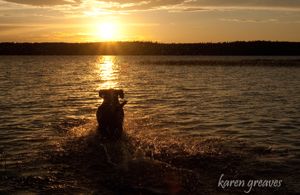 The trickiest part about getting this shot was keeping Lindor from disturbing the water! It’s very rare to have such a calm evening. Even though Lindor is careful not to get his feet wet when lapping up lake water at the shore, every sip has an noticeable ripple effect!