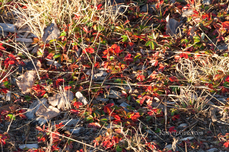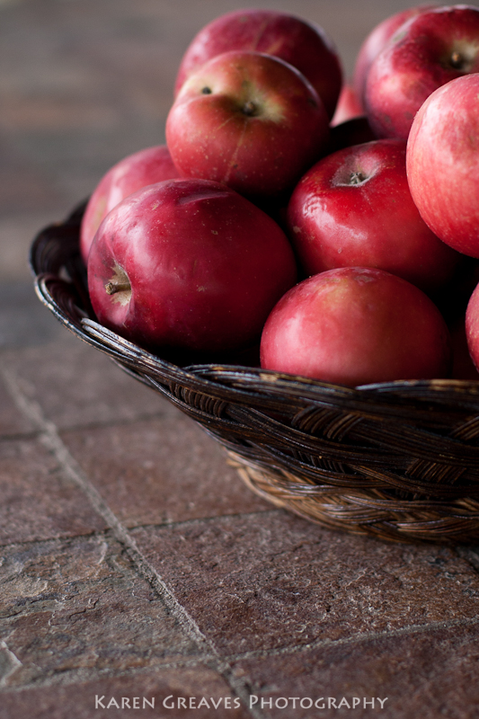 I’m not talking hockey stats here. (I am a big fan of the game for those of you who don’t know me.) I’m talking Celsius degrees. We currently are experiencing a plus temperature reading during the day time and a minus temperature at night. The frosty images in recent and upcoming posts are likely taken first thing in the morning. This one was captured late one drizzly afternoon. Not only was I drawn to the brillant reds of the apples in contrast to the greyness of the late fall day, but the way the gentle rain clung to the fruit.
