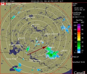 The view out my front window is ever changing. Last night it warranted a double take and trip out with the camera. Here’s the radar sequence of what went by…