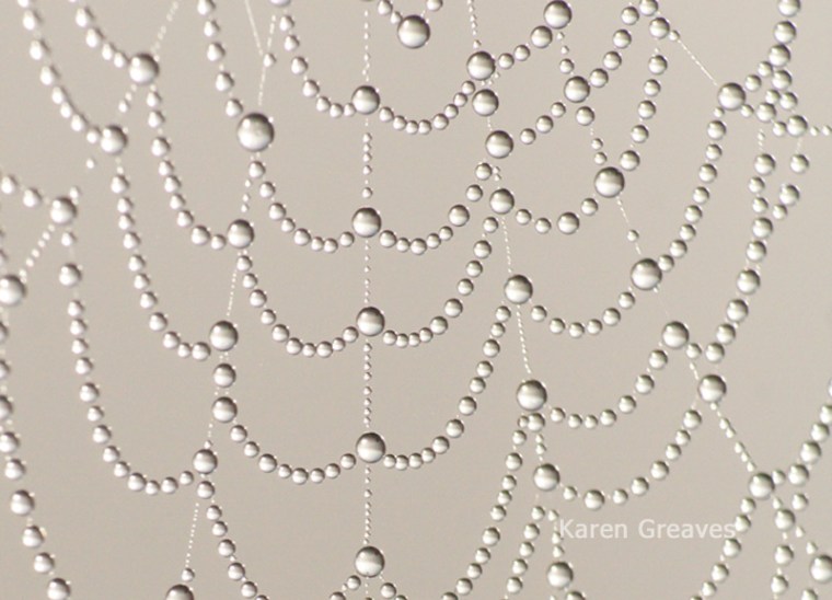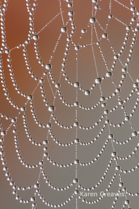 Another web to share from the other morning. The morning mist, carried by the gentle move of air, gradually built up as droplets on the web’s strands. Every so gently, droplets combined increasing in size.