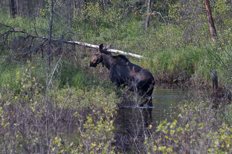 We chanced upon this cow moose grazing in the creek we frequently pass while heading to our cabin in the woods. I was able to slip up and out of the passenger side window to shoot over the roof as she was on the opposite side.